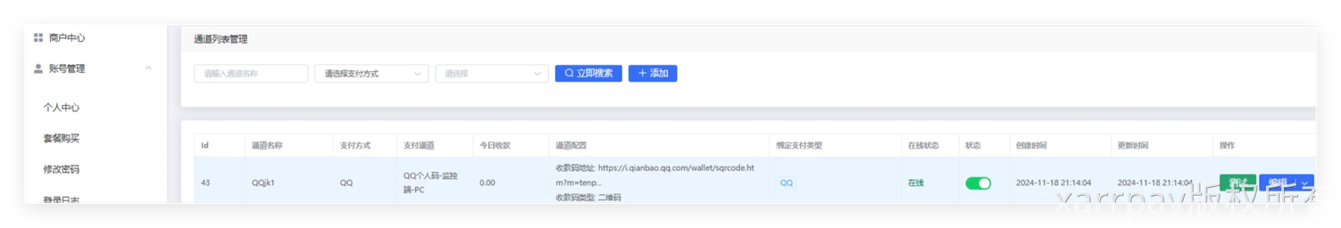 ## **QQ 监控通道添加教程** **使用前保证 QQ 实名且绑定银行卡** **QQ 近期没有频繁异地登录** **操作需要** **首先,点击网站通道列表,选择 QQ 进行添加,添加方法和免挂教程内类似**  **添加后默认在线,但是不可以****回调****,因此我们需要去挂监控软件进行监控**  监控软件下载地址:[点我下载](https://pan.baidu.com/s/16UQB7sY-T4SeVOlNl6viIA?pwd=wr3h)  按照要求进行填写,填写后点击账号管理,点击添加账户,添加什么通道就点什么账户。 需要下载监控指定版本的 QQ,微信或者支付宝,否则会导致无法读取,下载正确则选择进行或者账号进行监控即可。指定版本软件下载:[点我下载](https://pan.baidu.com/s/16UQB7sY-T4SeVOlNl6viIA?pwd=wr3h)